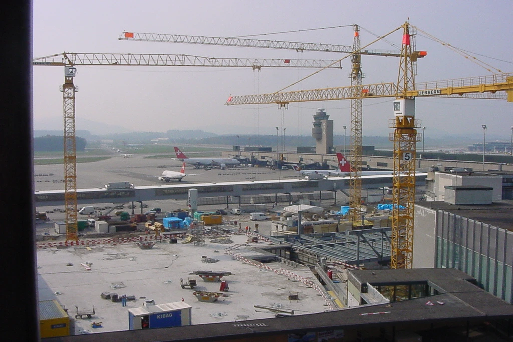 Neubau im Herzen des Flughafens Kloten mit einem Stahlbeton-Glas-Skelettbau. Der Neubau umfasst Bereiche für die Abflugabfertigung, Duty-Free und Restaurants. Die Baustellenlogistik gestaltet sich aufwändig, da sich die gesamte Baustelle auf der Luftseite befindet (im Zollbereich). Eine präzise Abstimmung der Baustellenabläufe mit dem Stahlbauunternehmer ist erforderlich. Zur Bewältigung der Bauarbeiten werden fünf große Hochbaukräne eingesetzt, mit einer Ausladung von bis zu 70 Metern.