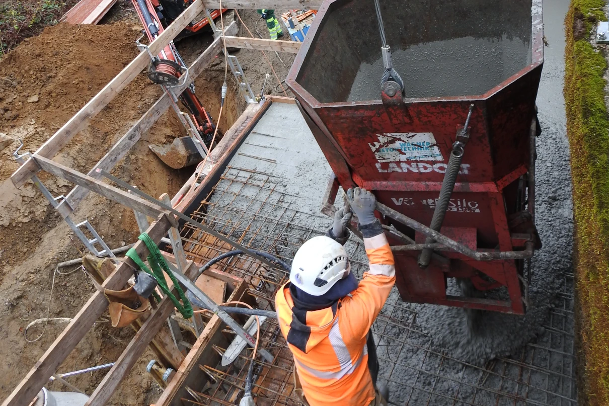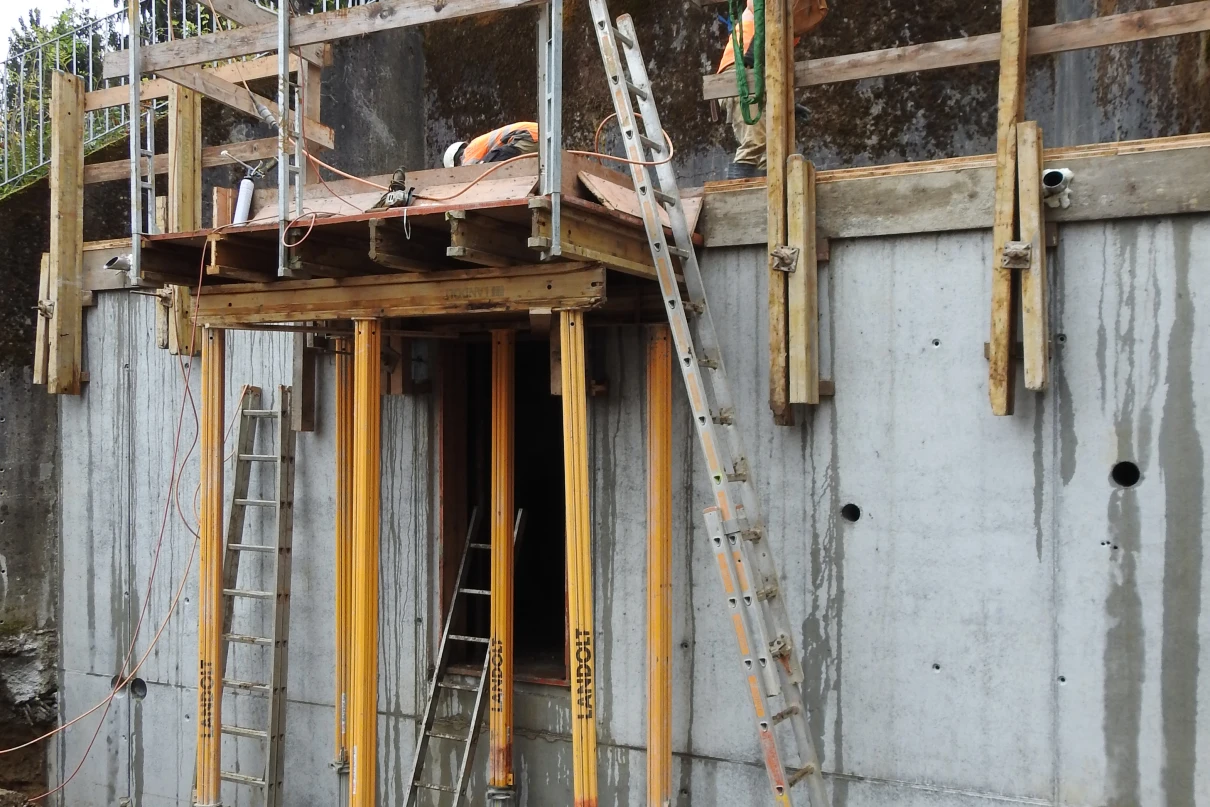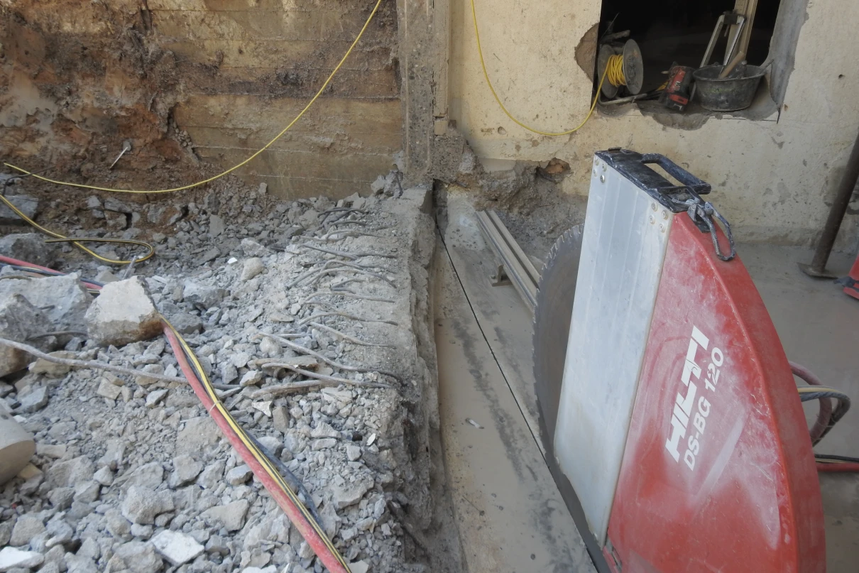 Der Rohrkeller wurde durch einen davor gesetzten Anbau erweitert, um mehr Platz für neue Armaturen, Mess- und Steuerungsanlagen zu schaffen. Unsere Beton-Fräs-Fachabteilung musste dafür am bestehenden Gebäude regelrechte Betonfelder herausschneiden, damit ideale Voraussetzungen für den neuen Betonkörper geschaffen werden konnten.
