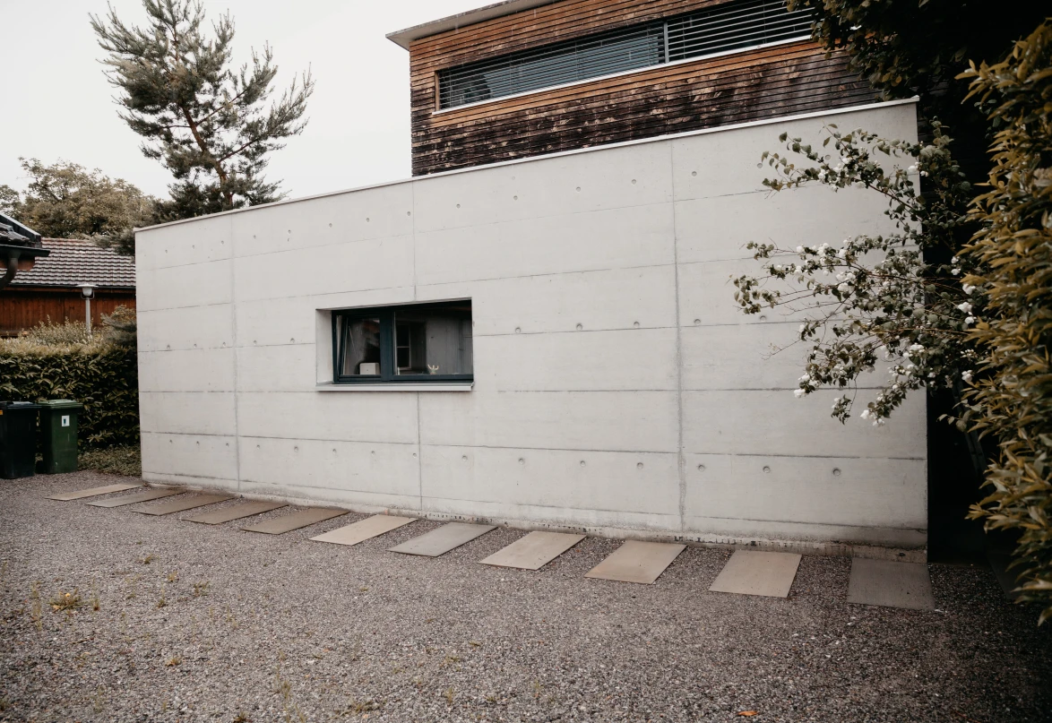 In einem Wohnquartier mitten in Winterthur durfte die Kundenabteilung der Hans Stutz AG diesen schönen Sichtbetonanbau realisieren.