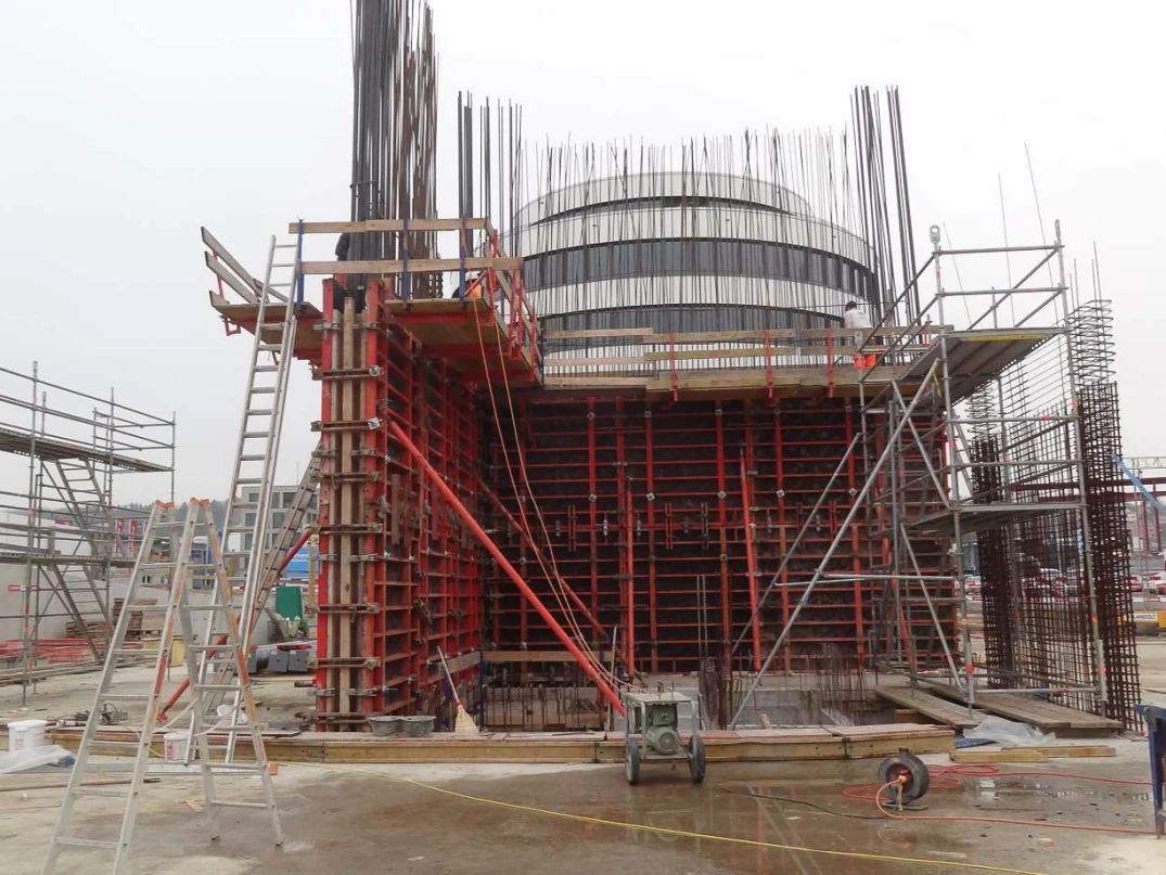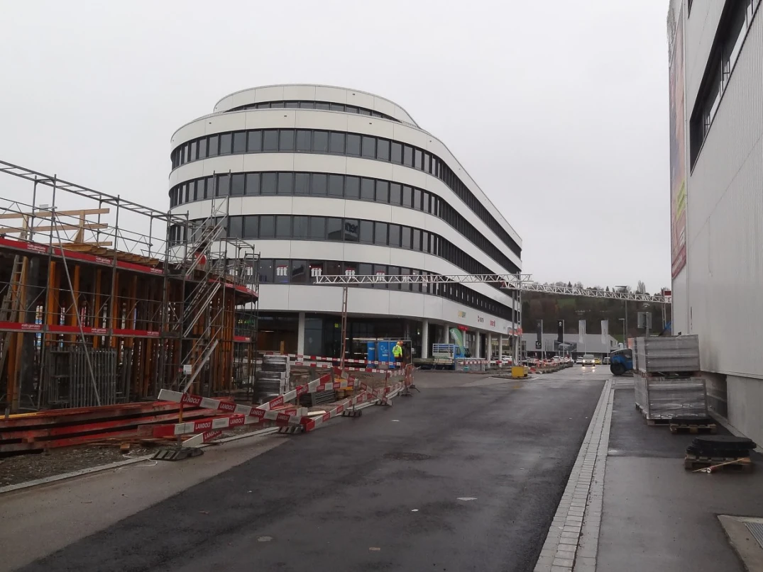 In einer Bauzeit von rund 10 Monaten erstellten wir in Frauenfeld in der Nähe der Autobahn ein 6-stöckiges Büro- und Geschäftshaus mit den Ausmassen 80 m x 26 m und eine Tiefgarage mit den Ausmassen 170 m x 32 m.