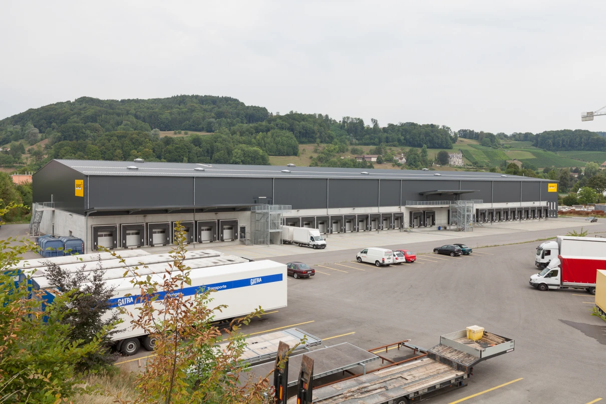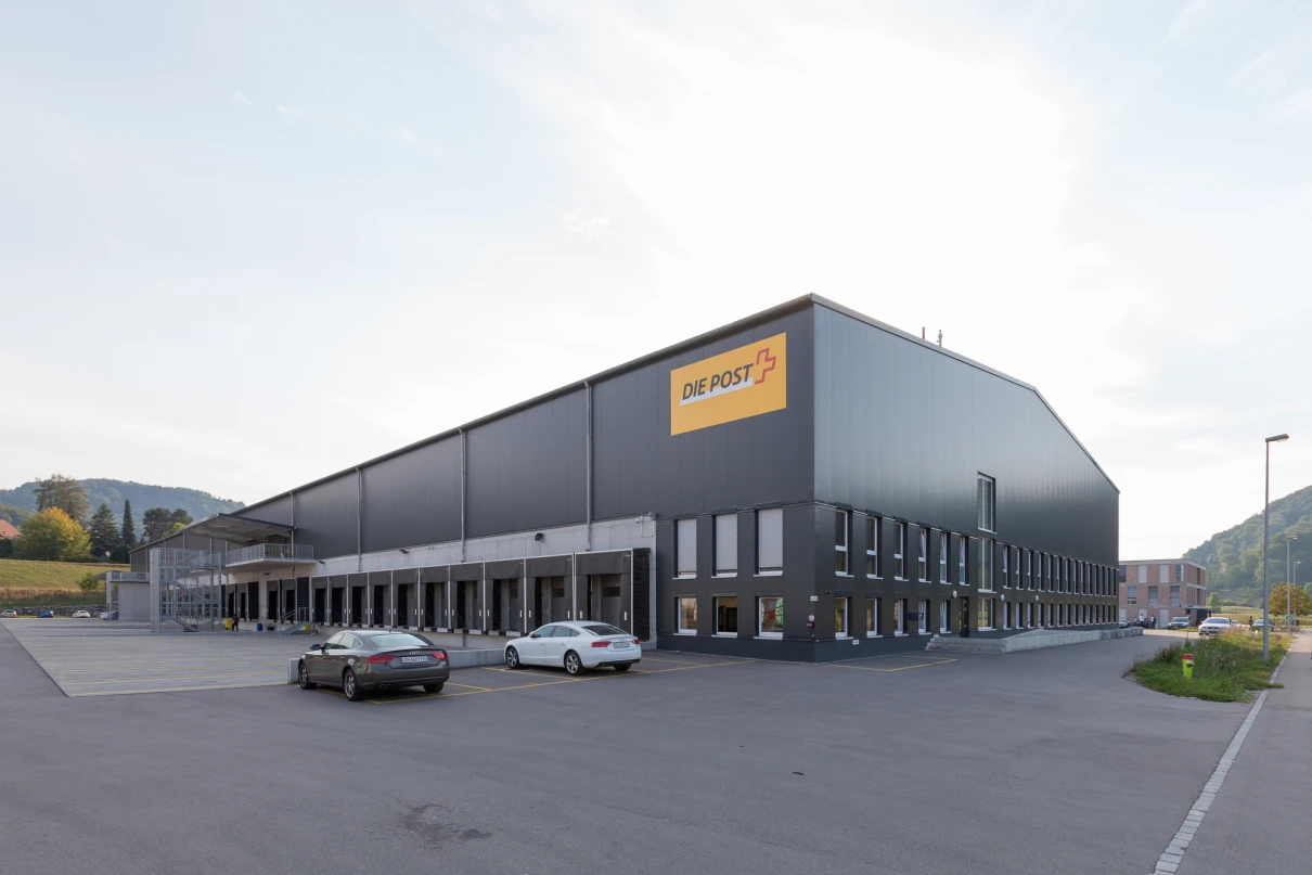 Zweistöckige Lager- und Umschlaghalle mit Bürogebäude für die Post. Die eindrücklichen Abmessungen von 45 x 120 Meter, sowie die hohen Nutzlasten lassen eine Multiple Nutzung zu und können den wechselnden